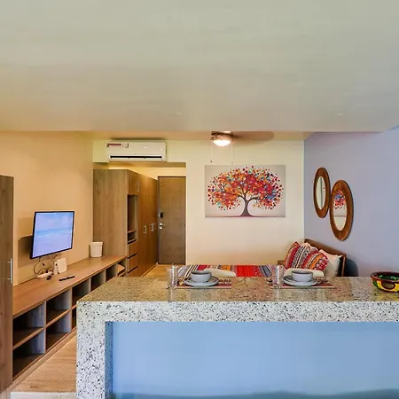Ferielejlighed udstyret med et køkken som er udstyret med et køleskab, en brødrister og en komfur top. Playa del Carmen lufthavn kan man nå på ca. 5 minutters kørsel fra indkvarteringen. Gæster kan dykke ind i en swimmingpool.